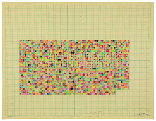 Mit Werken von Carl Andre, Jo Baer, Robert Barry, Jennifer Bartlett, Mel Bochner, Alighiero Boetti, Bill Bollinger, Michael Buthe, Dan Christensen, Hanne Darboven, Michael Heizer, Gordon Matta-Clark, Larry Poons, Fred Sandback, Robert Smithson, James Turrell, Lawrence Weiner