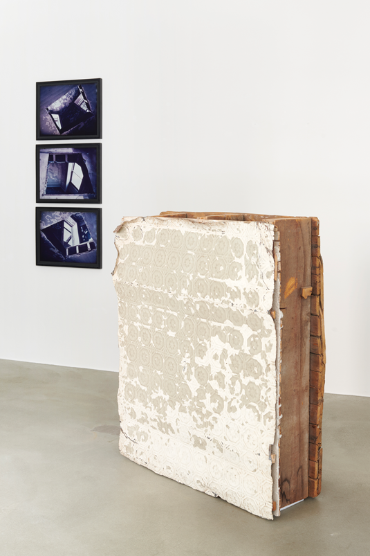 Holz, Linoleum, Metall und 3 C-prints gerahmt